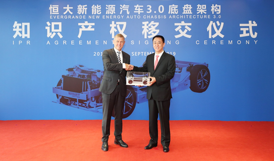 圖:恒大新能源汽車集團與德國BENTELER集團、FEV集團簽訂3.0底盤架構(gòu)知識產(chǎn)權(quán)移交協(xié)議