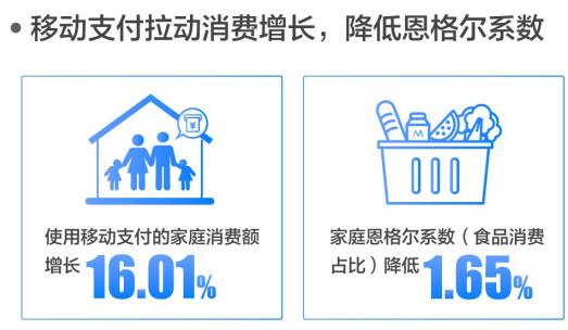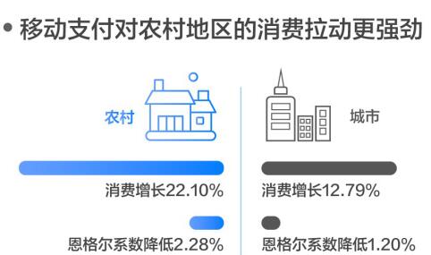 這項(xiàng)研究的數(shù)據(jù)來(lái)自中國(guó)家庭金融調(diào)查(CHFS),通過(guò)最新數(shù)據(jù)分析發(fā)現(xiàn):移動(dòng)支付可促進(jìn)中國(guó)家庭消費(fèi)增長(zhǎng)16.01%;與此同時(shí),顯著改變了消費(fèi)結(jié)構(gòu),使得恩格爾系數(shù)(食品消費(fèi)占比)降低1.65%,教育、文化、娛樂(lè)等發(fā)展型消費(fèi)大幅增加。尤其值得注意的是,移動(dòng)支付使得農(nóng)村居民及中低收入人群的消費(fèi)增速及消費(fèi)升級(jí)趨勢(shì)反超了城市居民及高收入群體。