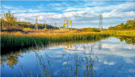 中國石油大慶油田中被一片綠意包圍的抽油機(jī)。(國資委供圖)