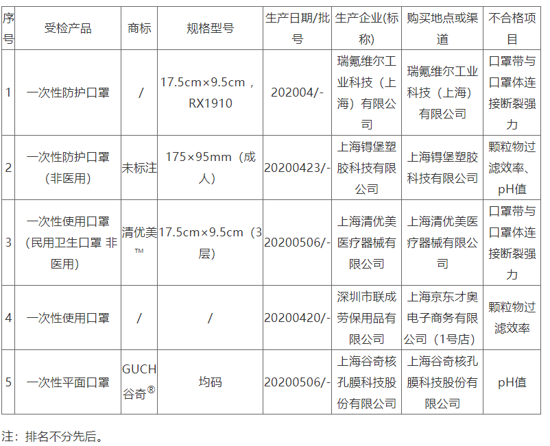 (圖為2020年上海市非醫(yī)用口罩產(chǎn)品質(zhì)量監(jiān)督抽查不合格產(chǎn)品)