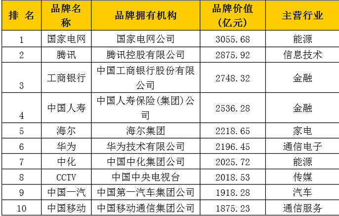 2016年中國(guó)品牌500強(qiáng)發(fā)布 國(guó)家電網(wǎng)、騰訊和工行名列三甲
