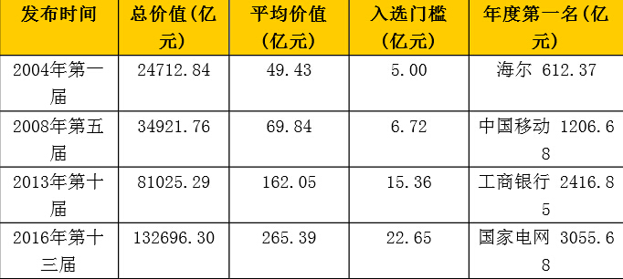中國(guó)500最具價(jià)值品牌13年演變(2004-2016)