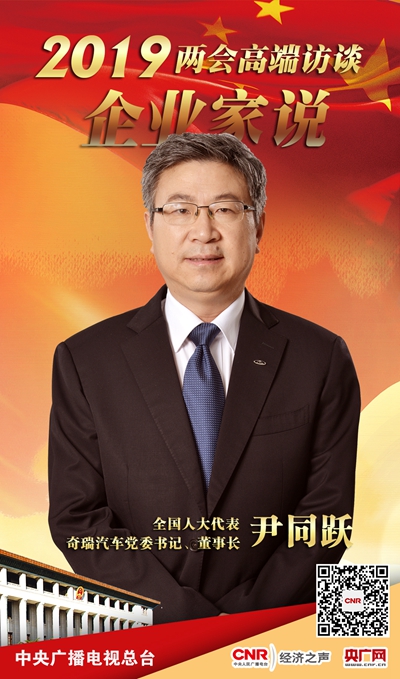 3月4日19:00-20:00,全國人大代表,奇瑞汽車黨委書記、董事長尹同躍做客中央廣播電視總臺央廣經濟之聲2019兩會高端訪談《企業(yè)家說》。經濟之聲、央廣網、央廣新聞客戶端同步直播,敬請關注!