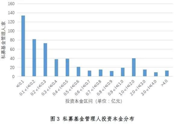 二是私募基金管理人投資本金相對集中。523家私募基金管理人共向89家科技創(chuàng)新企業(yè)投入346億元本金,平均每家科技創(chuàng)新企業(yè)獲得3.9億元投資。從投資本金金額看,小于1000萬元(含)最集中,共134家管理人,占比25.6%,合計(jì)投資本金6.8億元,占比2.0%;投資本金在3000萬元(含)以下的管理人數(shù)量占比達(dá)55.3%,合計(jì)投資本金39.8億元,占比11.5%;投資本金大于1億元的管理人數(shù)量占比為14.7%,合計(jì)投資本金213.1億元,占比61.6%。