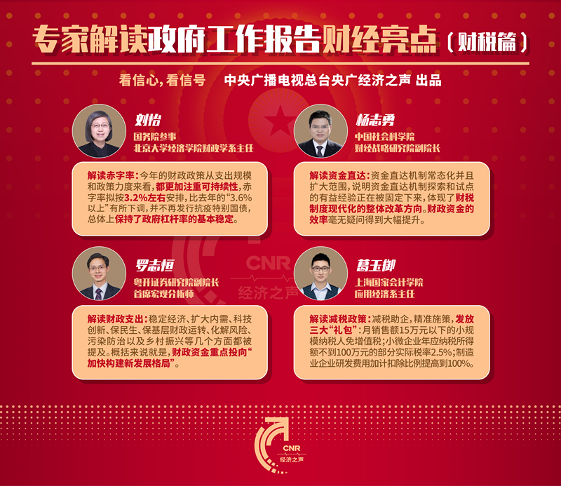 央廣網(wǎng)北京3月5日消息(記者劉柏煊)政府工作報告5日出爐。中央廣播電視總臺央廣記者第一時間采訪多位財稅界人士,對政府工作報告中的財稅“干貨”進(jìn)行盤點(diǎn)和解讀。