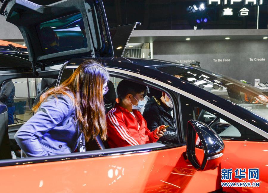參觀者在車展上試乘新能源汽車。新華社記者 周佳誼 攝