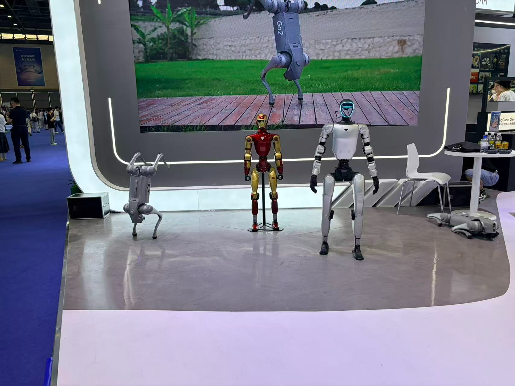 機(jī)器人在展位上展示倒立動(dòng)作(記者焦浩 攝)