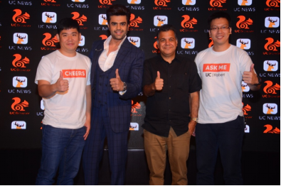 從左至右:阿里移動事業(yè)群海外業(yè)務(wù)總裁黃浩、印度知名電視主持人 Manish Paul、印度國民娛樂電視臺Colors電視臺 CEO Raj Nayak、阿里移動事業(yè)群海外業(yè)務(wù)印度辦公室總經(jīng)理卜穎侃