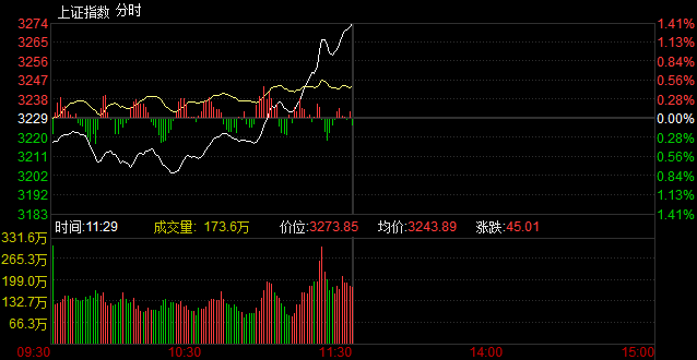 央廣網(wǎng)財(cái)經(jīng)北京2月26日消息 據(jù)經(jīng)濟(jì)之聲《交易實(shí)況》報(bào)道,兩市開盤雙雙低開,在十點(diǎn)五十六分翻紅,截至午盤,滬指報(bào)3273.85點(diǎn),上漲45.01點(diǎn),漲幅1.39%,成交1812億元;深成指報(bào)11639.5點(diǎn),上漲99.86點(diǎn),漲幅0.87%,成交1455億元;創(chuàng)業(yè)板指報(bào)1856.32點(diǎn),下跌20.42點(diǎn),跌幅1.09%,成交324.0億元。