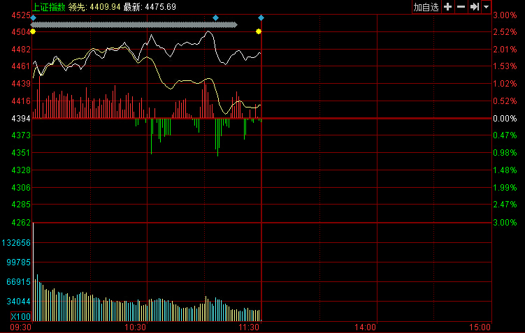午評(píng):滬指漲1.87%盤中上4500點(diǎn) 兩桶油強(qiáng)勢(shì)漲停