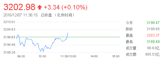 截至午盤,滬指報3207.37點,漲幅0.08%。
