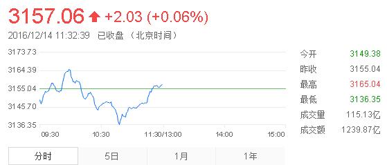 截至午盤,滬指報3157.06點,漲0.06%;深成指報10293.71點,下跌0.37%;創(chuàng)業(yè)板報1977.44點,跌0.38%。