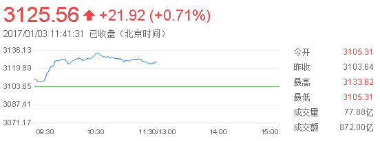 午盤:滬指漲0.71% 節(jié)后成交量放大