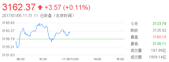 截至午盤,滬指報3162.37點,漲0.11%,創(chuàng)業(yè)板報1989.07點,跌0.13%。