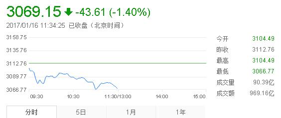 截至午盤(pán),滬指報(bào)3069.15點(diǎn),跌1.40%;深成指跌1.77%,報(bào)9831.22點(diǎn);創(chuàng)業(yè)板報(bào)1866.57點(diǎn),跌1.76%。
