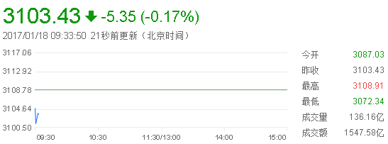 央廣網(wǎng)北京1月18日消息 據(jù)經(jīng)濟(jì)之聲《交易實(shí)況》報(bào)道,周三兩市繼續(xù)低開(kāi),截至開(kāi)盤,滬指報(bào)3104.77點(diǎn),跌0.13%,創(chuàng)業(yè)板報(bào)1860.24點(diǎn),跌0.41%。