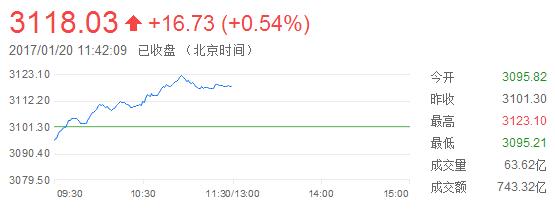 截至午盤(pán),滬指報(bào)3118.03點(diǎn),漲0.54%,創(chuàng)業(yè)板報(bào)1889.28點(diǎn),漲2.45%。