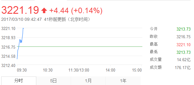 央廣網(wǎng)北京3月10日消息 據(jù)經(jīng)濟之聲《交易實況》報道,今日兩市小幅跳低開盤,上證指數(shù)報3213.73點,下跌3.02點,跌0.09%,成交額10.57億;深證成指報10415.38點,下跌5.67點,跌0.05%,成交額14.59億;創(chuàng)業(yè)板指報1952.50點,下跌1.44點,跌0.07%,成交額5.33億。