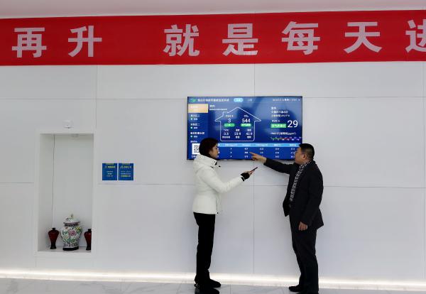工作人員:我們面前的大屏幕可以看到目前室外的PM2.5值是66,經過新風系統的處理,室內PM2.5值達到4,達到“優(yōu)”的等級。同時,在系統上集中顯示了TVOC室內含量,包括溫濕度、室內二氧化碳濃度。