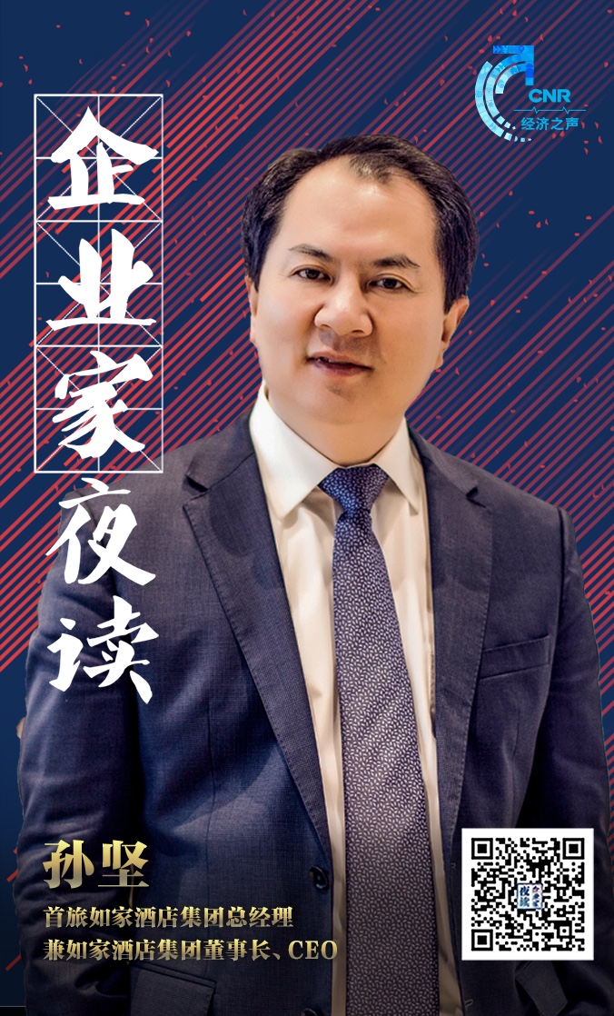 導(dǎo)讀:《企業(yè)家夜讀》是一檔面對(duì)企業(yè)家群體及關(guān)心、關(guān)注這個(gè)群體朋友們的閱讀朗讀節(jié)目。每周六、日晚八點(diǎn),我們都會(huì)相聚在電波里。本期做客《企業(yè)家夜讀》的是首旅如家酒店集團(tuán)總經(jīng)理孫堅(jiān)。