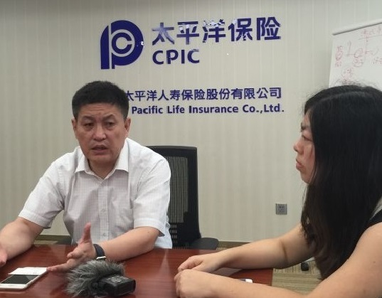 記者采訪太平洋壽險培訓(xùn)部副總經(jīng)理石乃文(左)