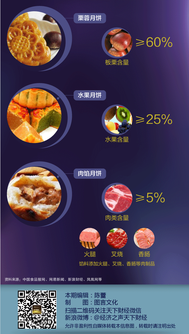 央廣網(wǎng)北京9月2日消息 據(jù)經(jīng)濟(jì)之聲《天下財(cái)經(jīng)》報(bào)道,中秋買月餅對(duì)照這個(gè)新標(biāo)準(zhǔn)!去年12月,國(guó)家質(zhì)檢總局發(fā)布了新版月餅標(biāo)準(zhǔn),今年是月餅新標(biāo)準(zhǔn)實(shí)施后的第一個(gè)中秋節(jié),月餅會(huì)更安全?更繽紛?更好吃?