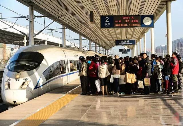 武清站站臺上,乘客正在排隊乘高鐵去往北京南站