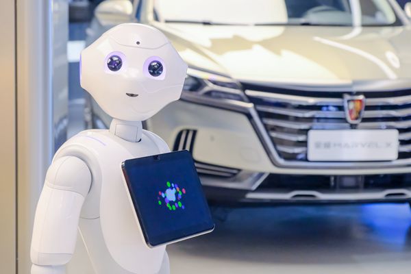 “小哥哥你好呀,非常高興認識你!睋碛忻娌孔R別功能的機器人熟練地將記者帶入展廳。這個充滿科技感的展廳坐落于上海地標性的新天地商圈內(nèi)。改革開放初期,這里還是上汽的汽車空調(diào)機廠;而一個月前,上汽榮威全國首家智能廣場在這里開門迎客,成為汽車行業(yè)內(nèi)新零售的“樣板間”。