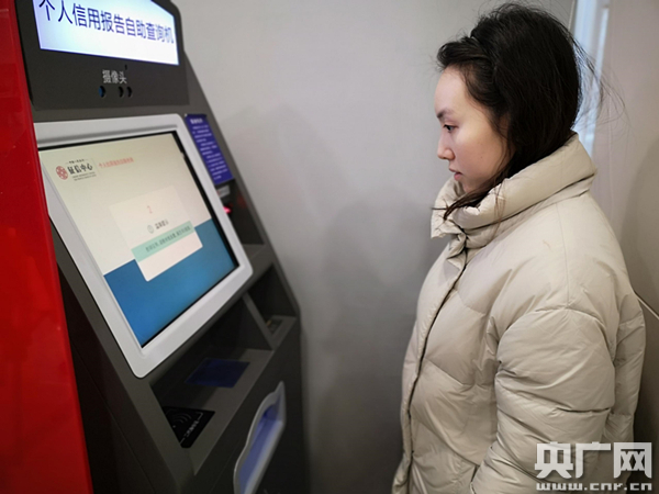 盧女士通過自助機查詢征信報告(中央廣播電視總臺央廣記者 蔣勇 攝)