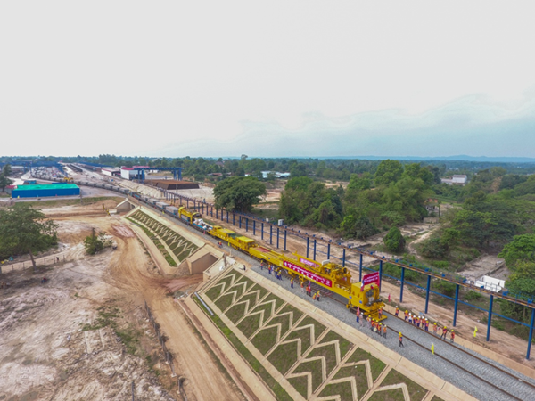 中老鐵路鋪軌作業(yè)(國(guó)鐵集團(tuán)供圖)