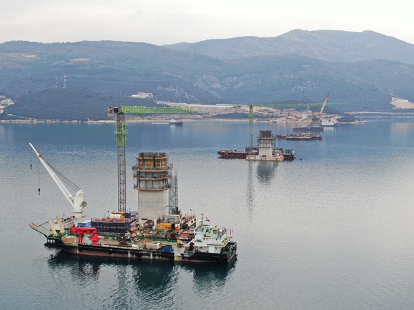 佩列沙茨大橋大陸側(cè)橋臺(tái)首層混凝土完成澆筑(中國(guó)路橋供圖)