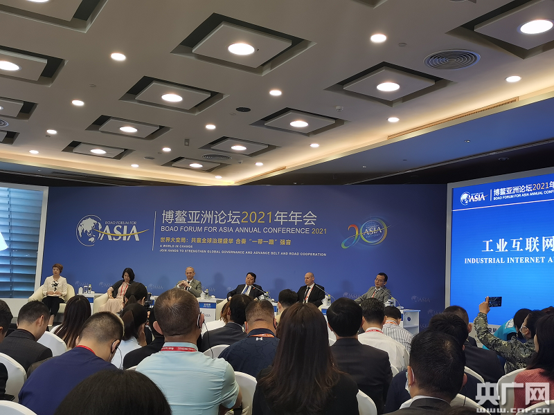 博鰲亞洲論壇2021年年會(huì)分論壇“工業(yè)互聯(lián)網(wǎng)與數(shù)字化轉(zhuǎn)型”現(xiàn)場(chǎng)(總臺(tái)央廣記者 唐婧 攝)