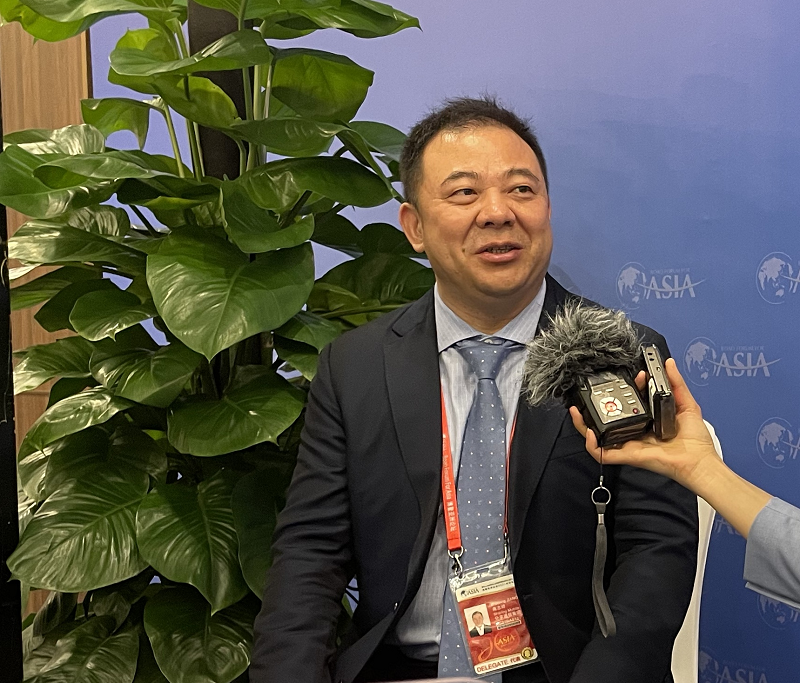 與會(huì)嘉賓、分享通信集團(tuán)董事局主席蔣志祥接受記者采訪(總臺(tái)央廣記者 劉柏煊 攝)