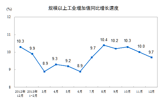 2013年12月份規(guī)模以上工業(yè)增加值增長(zhǎng)9.7%