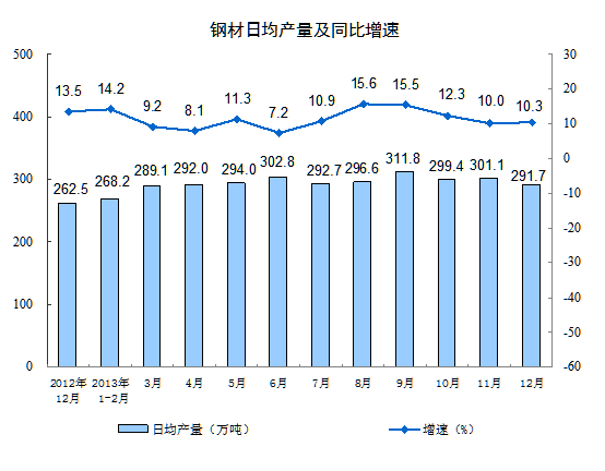 2013年12月份,規(guī)模以上工業(yè)增加值同比實(shí)際增長(zhǎng)9.7 %(以下增加值增速均為扣除價(jià)格因素的實(shí)際增長(zhǎng)率),比11月份回落0.3個(gè)百分點(diǎn);從環(huán)比看,12月份比上月增長(zhǎng)0.71%。1-12月,規(guī)模以上工業(yè)增加值同比增長(zhǎng)9.7%。