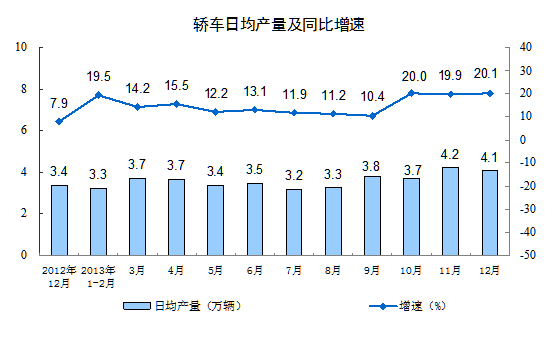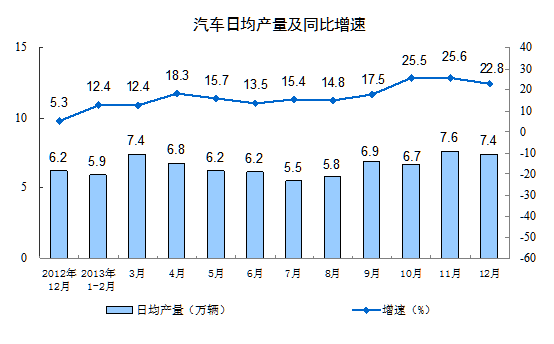 分產(chǎn)品看,12月份,464種產(chǎn)品中有307種產(chǎn)品同比增長(zhǎng)。其中,發(fā)電量4780億千瓦時(shí),同比增長(zhǎng)8.3 %;鋼材9041萬(wàn)噸,增長(zhǎng)10.3%;水泥20529萬(wàn)噸,增長(zhǎng)10.8%;原油加工量4202萬(wàn)噸,增長(zhǎng)0.2%;十種有色金屬347萬(wàn)噸,增長(zhǎng)2.3%;乙烯153萬(wàn)噸,增長(zhǎng)15.1%;汽車229.8萬(wàn)輛,增長(zhǎng)22.8%;轎車127.1萬(wàn)輛,增長(zhǎng)20.1%。