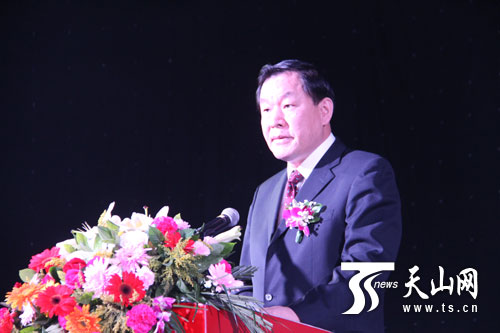自治區(qū)經(jīng)信委黨組書(shū)記、主任胡開(kāi)江在開(kāi)幕式上講話。