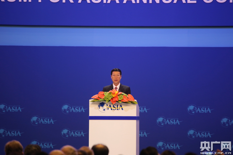 博鰲亞洲論壇2017年年會(huì)開幕式3月25日上午9時(shí)舉行。圖為中華人民共和國(guó)國(guó)務(wù)院副總理張高麗發(fā)表主旨演講 。(央廣網(wǎng)記者 郁雨鋮/攝)