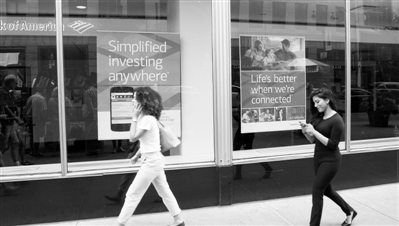 在美國,好的個人信用有助于申請銀行貸款。圖為行人路過美國銀行。 本報駐紐約記者 張 偉攝