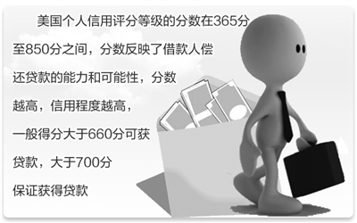 在美國,幾乎每個成年人都離不開信用消費,要申請信用卡、分期付款、抵押貸款等,都需要對消費者的信用資格、信用狀態(tài)和信用能力進行評價,這種評價集中表現(xiàn)為信用報告。美國個人信用制度對個人行為的約束主要體現(xiàn)為:個人信用記錄和信用評分已成為衡量個人信用的唯一標準,不僅金融機構(gòu)使用,而且很多商業(yè)企業(yè)、雇傭單位也在使用,甚至很多人結(jié)婚前要查詢對方的個人信用記錄,作為婚前擬訂個人財產(chǎn)協(xié)議的依據(jù)。