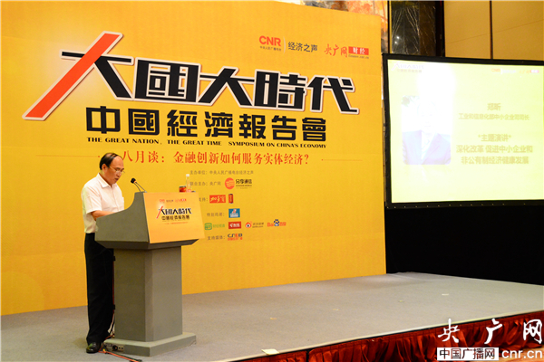 央廣網(wǎng)財(cái)經(jīng)北京8月25日消息 由央廣網(wǎng)財(cái)經(jīng)、經(jīng)濟(jì)之聲、分享通信共同主辦的《大國大時(shí)代——中國經(jīng)濟(jì)報(bào)告會(huì)》八月談“金融創(chuàng)新如何服務(wù)實(shí)體經(jīng)濟(jì)”今日召開,工業(yè)和信息化部中小企業(yè)司司長鄭昕表示,抓好六個(gè)進(jìn)一步,就是要進(jìn)一步優(yōu)化發(fā)展環(huán)境;第二,進(jìn)一步加大財(cái)政的支持,我們要配合財(cái)稅部門,要進(jìn)一步優(yōu)化專項(xiàng)資金的支持的重點(diǎn)。第三,進(jìn)一步推動(dòng)中小企業(yè)創(chuàng)新的發(fā)展。在這方面我們實(shí)施中小企業(yè)信息化推進(jìn)工程,深入開展中央企業(yè)融合能力的提升;四,進(jìn)一步解決融資難,我們要繼續(xù)深化我部與中農(nóng)工建交五大銀行和國家開發(fā)銀行的戰(zhàn)略合作協(xié)議,加大小微企業(yè)的信貸支持,推動(dòng)有關(guān)部門進(jìn)一步做好中小企業(yè)信用擔(dān)保體系的建設(shè),規(guī)范扶持和監(jiān)管,對(duì)擔(dān)保資金的進(jìn)行效果評(píng)估,進(jìn)一步完善政策鼓勵(lì)擔(dān)保機(jī)構(gòu),擴(kuò)大對(duì)小微企業(yè)擔(dān)保力度;五,進(jìn)一步完善服務(wù)的體系,以中小企業(yè)服務(wù)平臺(tái)的網(wǎng)絡(luò)建設(shè)和示范平臺(tái)為重點(diǎn),推進(jìn)服務(wù)體系建設(shè);六,進(jìn)一步推動(dòng)中小企業(yè)的交流合作。