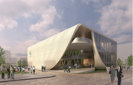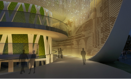 The image of power that arises from the breaking of ground to the sprouting of seeds has inspired the design of the China Corporate United Pavilion. The life that comes from the green heart, that contains the auditorium space, transforms into the spiral of a DNA chain tracing an upward path, to then take on an elliptical form: the ramp gently accompanies visitors upwards towards the open spaces of the Italian-Chinese garden and the terrace.
