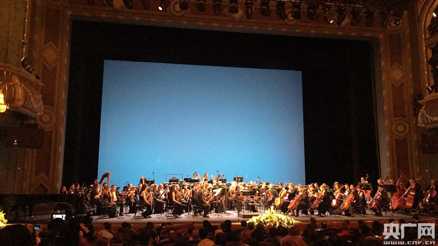 央廣網莫斯科9月15日消息 第二屆絲綢之路國際文化論壇系列活動于14日上午拉開帷幕,繼“相遇·暢想——絲綢之路國際青年藝術展”后,14日晚“新奧之夜——絲綢之路國際音樂會”在莫斯科最富盛名的俄羅斯國家大劇院新舞臺上演,共有來自絲路沿線14個國家的音樂家同臺表演。樂隊指揮是俄羅斯人民藝術家、俄羅斯國立電影交響樂團總指揮謝爾蓋·斯科利普卡先生。