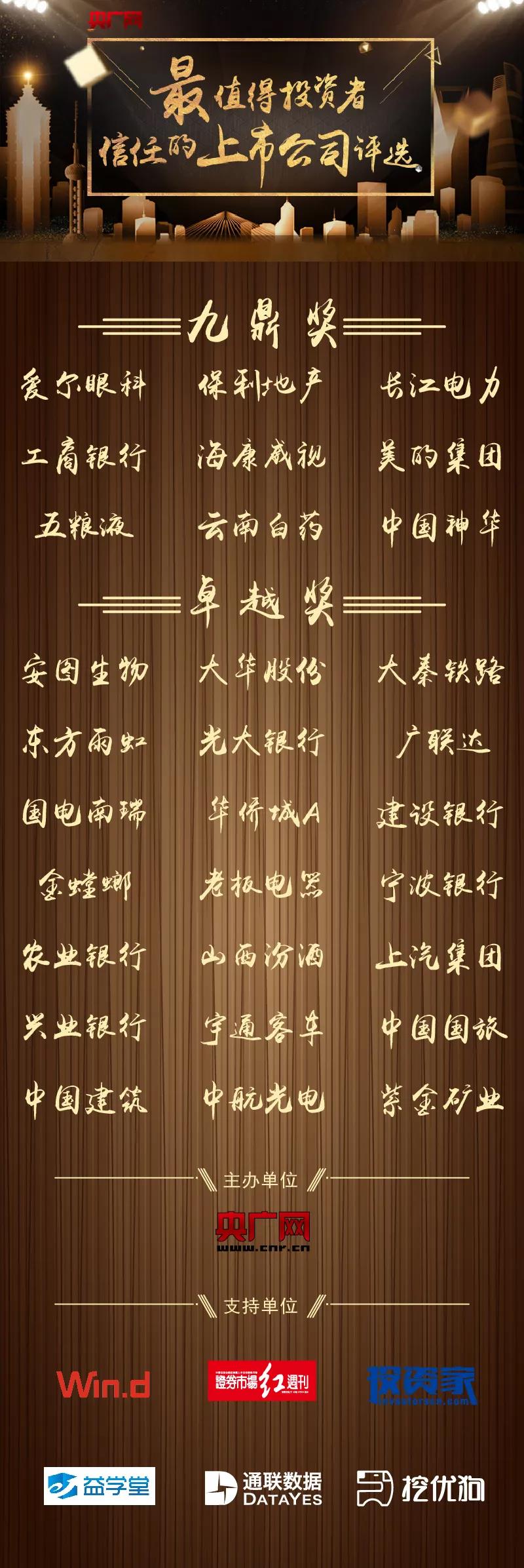 在媒體監(jiān)督責任方面,作為中央重點新聞網(wǎng)站的央廣網(wǎng),邁出了勇敢且頗具創(chuàng)新性的一步。經(jīng)過3個多月緊鑼密鼓的籌備,央廣網(wǎng)“最值得投資者信任的上市公司”評選活動各項投票、評審工作拉下帷幕,央廣網(wǎng)“最值得投資者信任的上市公司”30強榜單,為上市公司贏得投資者信任作出指引,為樹立投資者信息提供榜樣。
