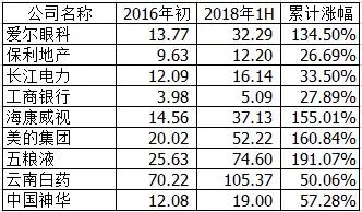 通過數(shù)據(jù)分析可以發(fā)現(xiàn),在過去的兩年多時間里,滬綜指從2016年初的2737.6點,到2018年6月末的2847.42點,幾乎沒有任何漲幅,從整體來看A股的投資者并未能從股票投資中分享中國經(jīng)濟發(fā)展的碩果;但其實這只是表象,拋開這些高溢價、但質量底下的“概念股”,榮獲了“九鼎獎”的9家上市公司股價表現(xiàn)則明顯更加強勁,與市場整體形成了鮮明對照: