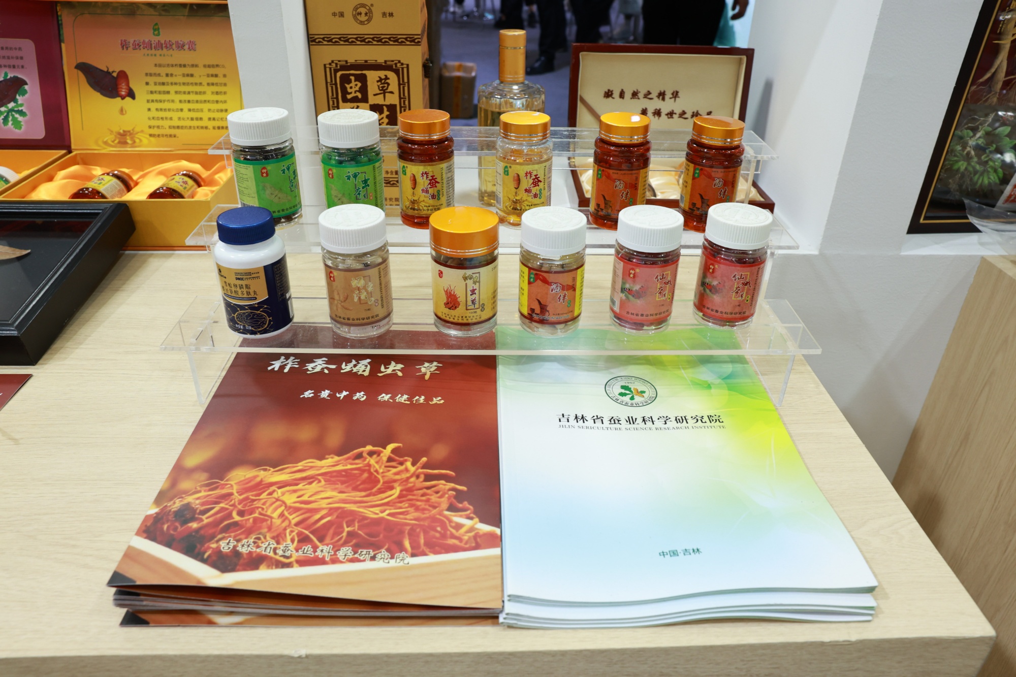 吉林省蠶業(yè)科學(xué)研究院研發(fā)的柞蠶蛹蟲草首次參展就備受關(guān)注,參展專家介紹:這是被稱為“北冬蟲夏草”菌種,是將蛹蟲草菌接種到健康的柞蠶蛹上,在模擬自然環(huán)境的條件下生長(zhǎng)出的真菌與昆蟲復(fù)合體。柞蠶蛹蟲草含有的蟲草素、蟲草酸、腺苷、蟲草多糖等活性物質(zhì),和野生冬蟲夏草的化學(xué)成分、藥理作用非常接近。這些活性物質(zhì)能幫助提高人體免疫力,還具有抗腫瘤、抗病毒、降血脂、降血壓、補(bǔ)肺益腎等多種功效,是兼顧傳統(tǒng)補(bǔ)益與現(xiàn)代保健的系統(tǒng)調(diào)理型中藥材。