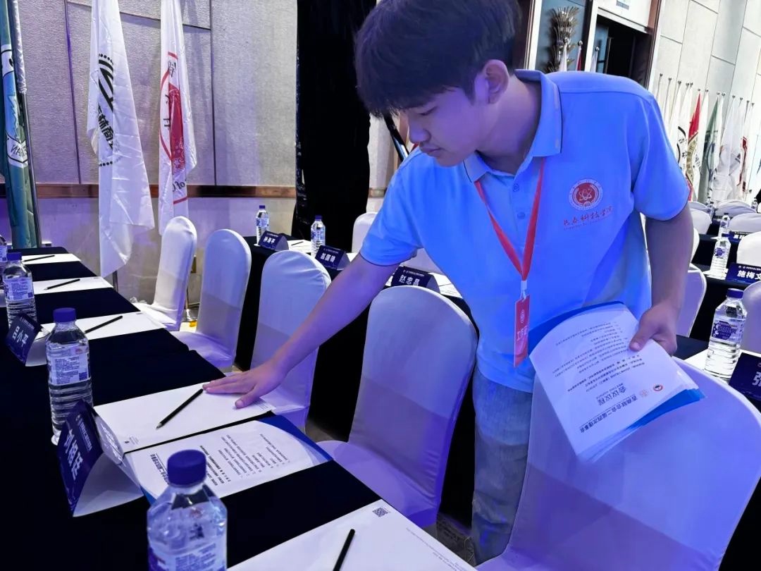 會議開始前,由長春科技學院志愿者團隊負責國內外商會表格整理、24日午宴名單整理、參會人員名單回執(zhí)信息表整理,場地的安旗與擺放、姓名牌的粘貼與擺放以及參會人員的接機/站、酒店入住辦理引導、簽到、嘉賓牌與座位圖分發(fā)、座位引導等工作。