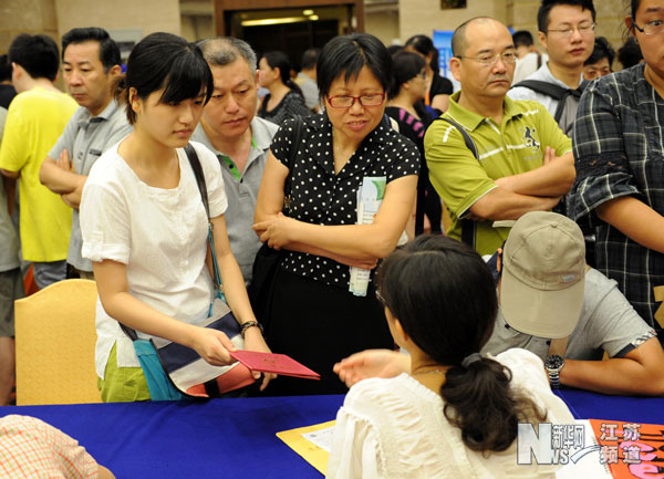 央廣網(wǎng)南京8月29日消息 8月28日,南京市總工會組織的以幫助困難職工子女就學(xué)、就業(yè)為主要內(nèi)容的“金秋助學(xué)、陽光就業(yè)”愛心行動啟動,“陽光就業(yè)”招聘會在市工人文化宮內(nèi)舉行。本場招聘會共有70多家愛心企業(yè)提供用工崗位1.2萬多個,3100多名來自困難職工家庭的高校畢業(yè)生、其他待業(yè)大學(xué)生以及失業(yè)下崗人員進(jìn)場應(yīng)聘。市總工會對招聘單位的用工環(huán)境、工資、福利待遇等提出了具體要求。“陽光就業(yè)”愛心行動中,工會系統(tǒng)還將對困難職工子女實(shí)行免費(fèi)的就業(yè)技能培訓(xùn)、對準(zhǔn)備創(chuàng)業(yè)者開展創(chuàng)業(yè)咨詢、創(chuàng)業(yè)指導(dǎo)并提供創(chuàng)業(yè)貸款。(新華社記者 孫參 攝)
