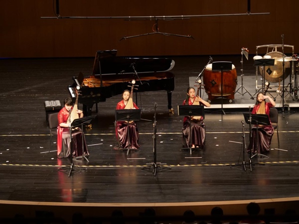 韓聞赫作曲的民族室內(nèi)樂《龍韻》首先開場,絲竹的韻意與現(xiàn)代音樂的律動交相輝映,贊頌了“龍的傳人”偉大民族勤勞勇敢的品質(zhì)和砥礪奮進(jìn)的風(fēng)貌。羅麥朔作曲的《秋葉三則》、陳哲作曲的《蹀馬傾杯舞千秋》、江洋作曲的《青色煙雨》等樂曲展現(xiàn)了揚琴、古箏、琵琶等中國民族樂器的豐富表現(xiàn)力。敖翔作曲的《如夢》《踏月行歌》和景徐作曲的《竹思水墨五幀》(節(jié)選)等樂曲將三弦、笙和竹笛等民族樂器與鋼琴巧妙融合。曹鋮作曲的民族室內(nèi)樂《吳》以蘇州地方音樂為素材,描寫了吳地的風(fēng)情。李霓霞作曲的民族室內(nèi)樂《聆雨》以豐富的樂器音響和多彩的音樂畫面將觀眾帶入了江南千姿百態(tài)的雨景之中。鄭光智作曲的民族室內(nèi)樂《雪霜薺麥》擷取了韓愈的《幽蘭操》,既表達(dá)了古代文人面對逆境時的堅強剛毅,更展現(xiàn)出新時代中國民族音樂的特色與精神。