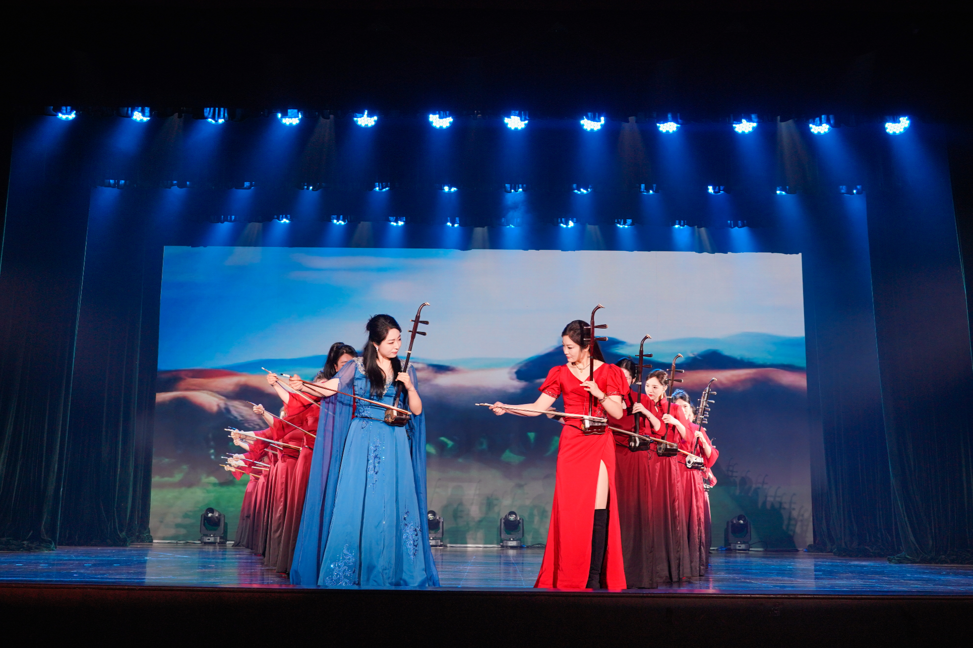 演出在蘇州民族管弦樂團(tuán)與吳中區(qū)文化館的二胡齊奏《戰(zhàn)馬奔騰》中開場,金鐘獎(jiǎng)獲得者孫瑤琦領(lǐng)銜,激昂的弓弦瞬間點(diǎn)燃全場。